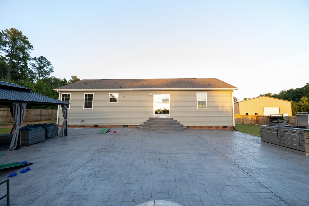 The Bull's Retreat, a newly renovated space with 2 King Beds and 2 single beds, ideal for travelers or getaways. It's centrally located in a peaceful neighborhood near Ft. Bragg, Fayetteville, Sanford & Southern Pines. It's great for reconnecting with familiy and friends. The open-concept living space includes a fully equipped kitchen, breakfast bar, dining area, 3 bedrooms, 2 bathrooms, and open living room. Note: Owners reserve the garage for personal use only; it isn't accessable to guests.