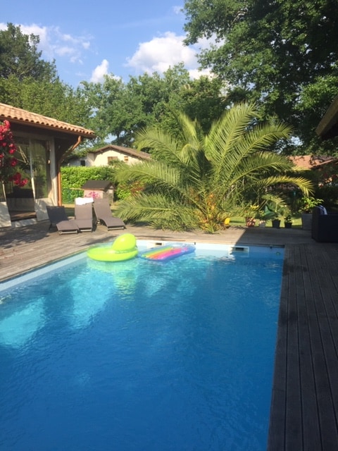 Appartement en dessous de notre logement, au rez de jardin, de 2 chambres, avec deux terrasses, piscine chauffée, 25 degrés d’avril à novembre, sur un grand parc de 2400 m2, ce qui est rare à cet emplacement et lui confère un charme discret et merveilleux. Avec ses pins centenaires, cachée dans la verdure, la suite est à 2 min à pied de la plage d’Eyrac et 5 min du centre ville d'Arcachon : ses restaurants, ses commerces, ses animations, profitez de vos vacances sans voiture…ni embouteillage !