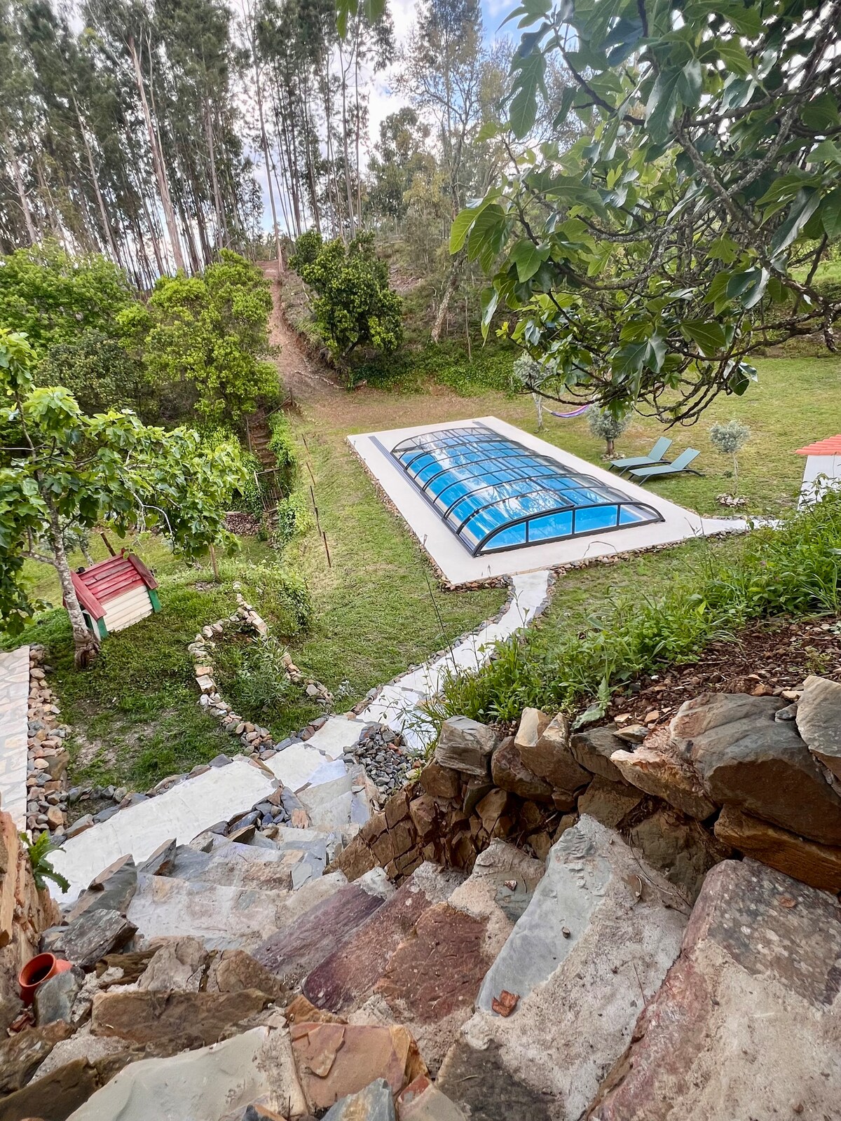 계곡의 탁 트인 전망을 감상할 수 있는 조용한 산 위에 위치하고 있습니다. 실버 코스트에 편리하게 위치하고 있으며, 나자레에서 8km 거리에 있고, 아름다운 유네스코 세계 유산 수도원이 있는 알코바사에서 차로 7km 거리에 있습니다. 차로 3분 거리에 두 개의 레스토랑, 커피 바, 슈퍼마켓이 있습니다. 주변에서 아름다운 산책을 즐길 수 있는 완벽한 휴양지입니다. 새소리를 들으며 아침에 일어나고 아름다운 전망을 즐기며 아침 식사를 즐기세요.