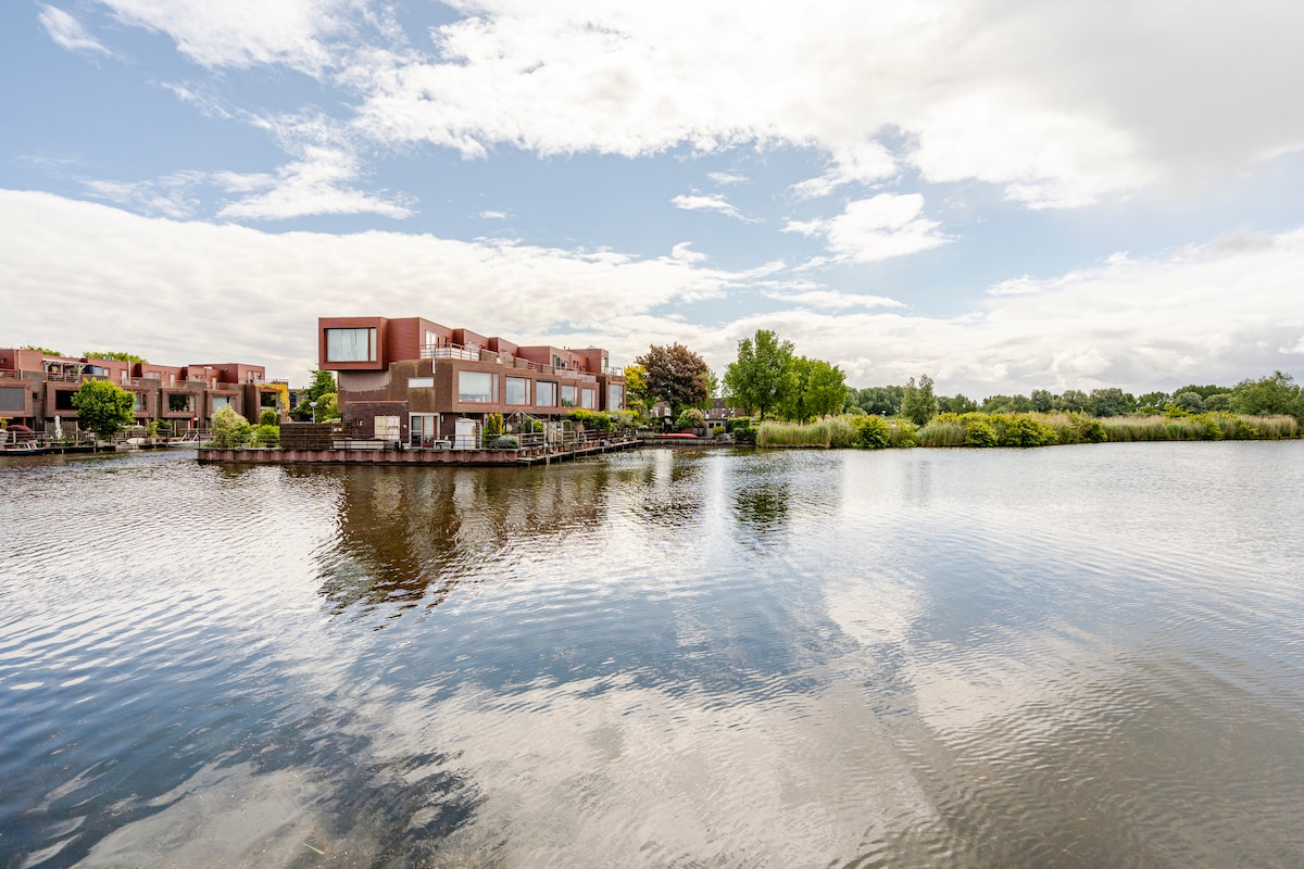 저희 3층짜리 숙소는 넓고 편안하며 매우 밝은 숙소로, 사방이 물로 둘러싸여 있으며, 자연 보호구역 한가운데에 있어 프라이버시가 보장됩니다. SUP나 카누에 올라타고 물, 자연, 야생 동물, 탁 트인 전망을 즐겨보세요! 초고속 인터넷을 갖춘 작업 공간이 많이 있습니다. 숙소는 시설이 완비되어 있습니다. 유명한 쇼핑센터인 바타비아스타드뿐만 아니라 시내, 극장, 역사 유적지가 근처에 있습니다. 차로 40분 이내에 암스테르담에 도착할 수 있습니다.