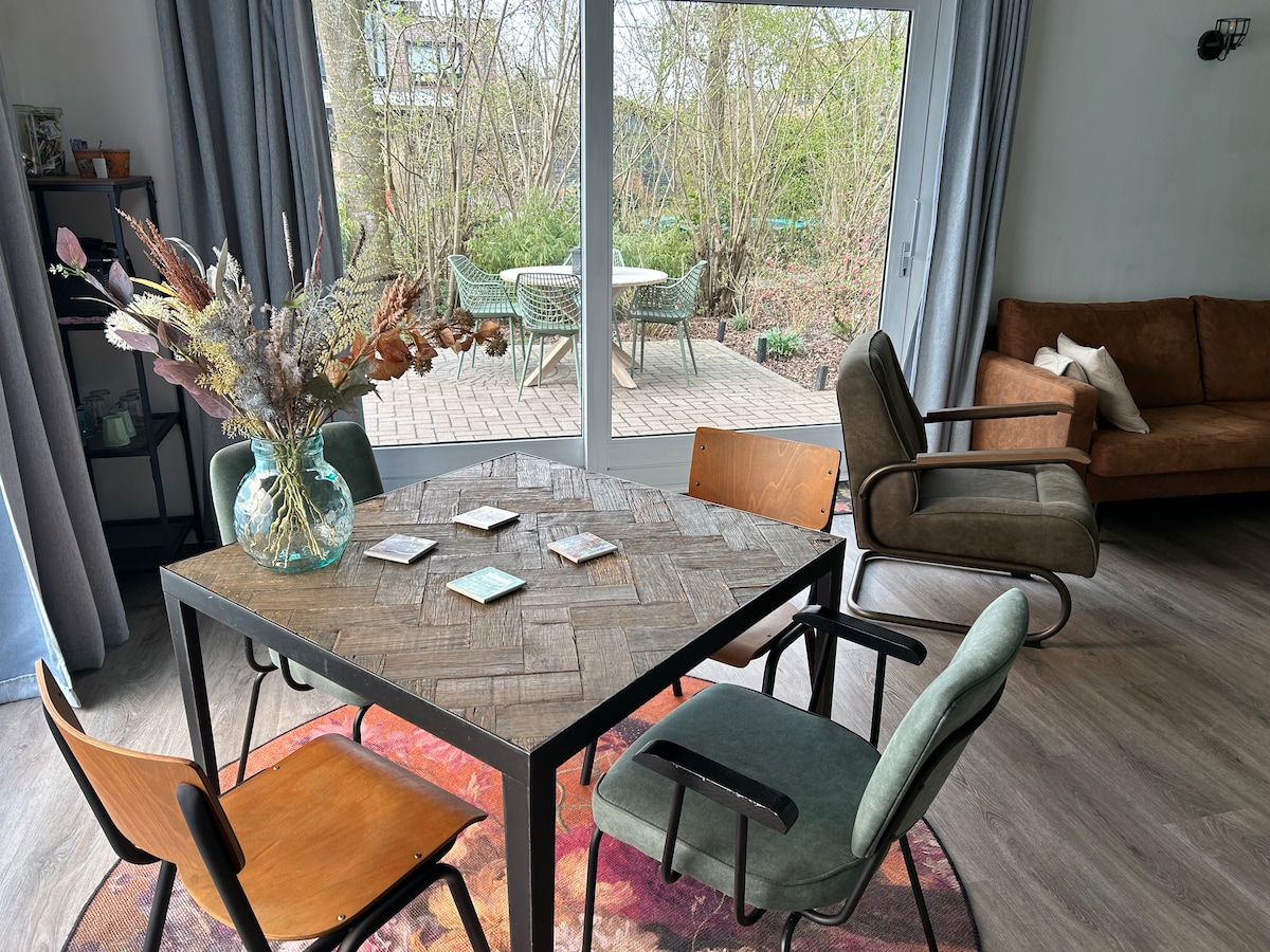 디자인 콘테스트의 결과로 여러 개의 특별한 주택이 있는 독특한 지역인 De Realiteit에 있는 우리의 작은 집에 여러분을 환영합니다. 이 공간은 전적으로 여러분의 것이며 필요한 모든 것을 갖추고 있습니다. 더블 침대, 욕실 및 주방(콤비 전자레인지, 인덕션 레인지 및 미니 냉장고 포함). 테라스도 있으며 문 앞에서 주차할 수 있습니다. 이 지역은 아름다운 자연을 제공하며, 물가로 걸어갈 수 있고 암스테르담으로 쉽게 이동할 수 있습니다.