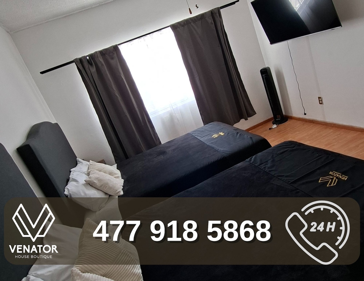 Te va a encantar hospedarte en este espacio independiente de 2 habitaciones y un baño completo en una zona privilegiada y segura a 5 min en auto de Poliforum en zona de cafeterías, gimnasios, restaurantes de buen nivel centro Histórico Habitación 1 : 1 Cama Queen Habitación 2 : 1 cama individual, 1 cama Matrimonial un sofacama 10 pm -7am es zona de silencio para comodidad de los vecinos Hermosa zona residencial ideal para caminar Estamos muy cerca de Poliforum y Foro Mazda de conciertos