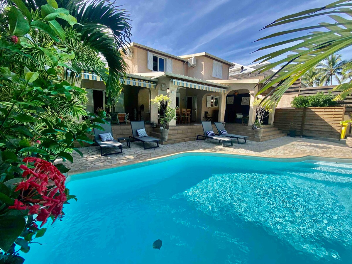 워터홀 해변에서 도보로 5분 거리에 있는 단독주택입니다. 산호초로 보호되는 석호. 각각 더블 침대가 있는 에어컨이 설치된 객실 3개, 주방, 거실, 테라스 2개, 태양열 난방이 가능한 작은 4mx3m 소금 수영장, 정원. 안뜰에 차량 2대를 반입할 수 있습니다. 숙소 (La Bodega, L 'univert...) 슈퍼마켓에서 350m 거리에 있는 바와 레스토랑은 차로 6분 거리에 있습니다. 모든 생활 어메니티는 차량으로 3분거리에 있습니다. 최대 수용 인원은 성인 6명과 어린이 2명입니다