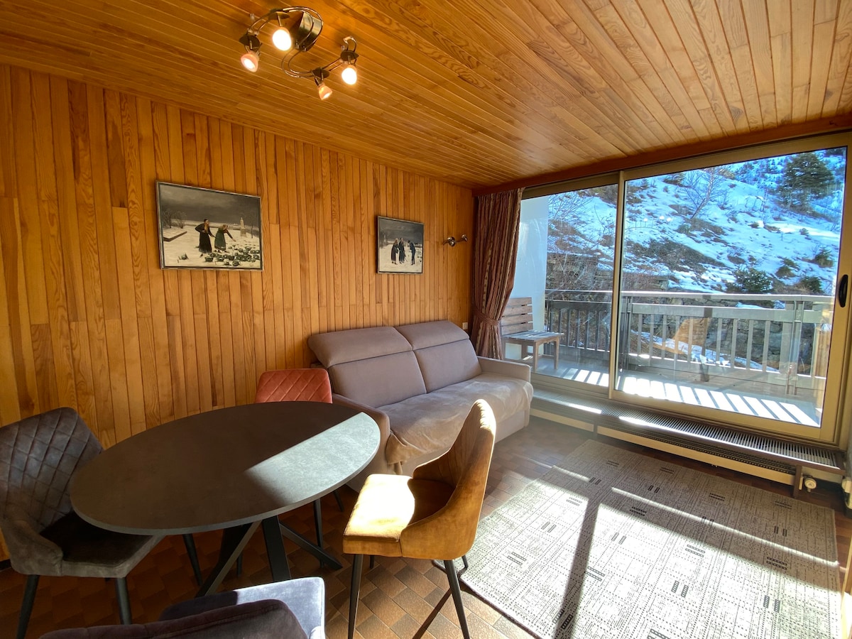 2개의 방 5명이 편안하게 머물 수 있는 숙소 스키 슬로프 바로 아래 스키 리조트의 중심부에 위치. 38㎡ 침실 1개, 더블 침대 1개, 거실에 싱글 침대 3개, 개방형 주방, 욕실, 별도의 화장실, 남서향 발코니, 탁 트인 전망. 전용 스키 보관함. 와이파이