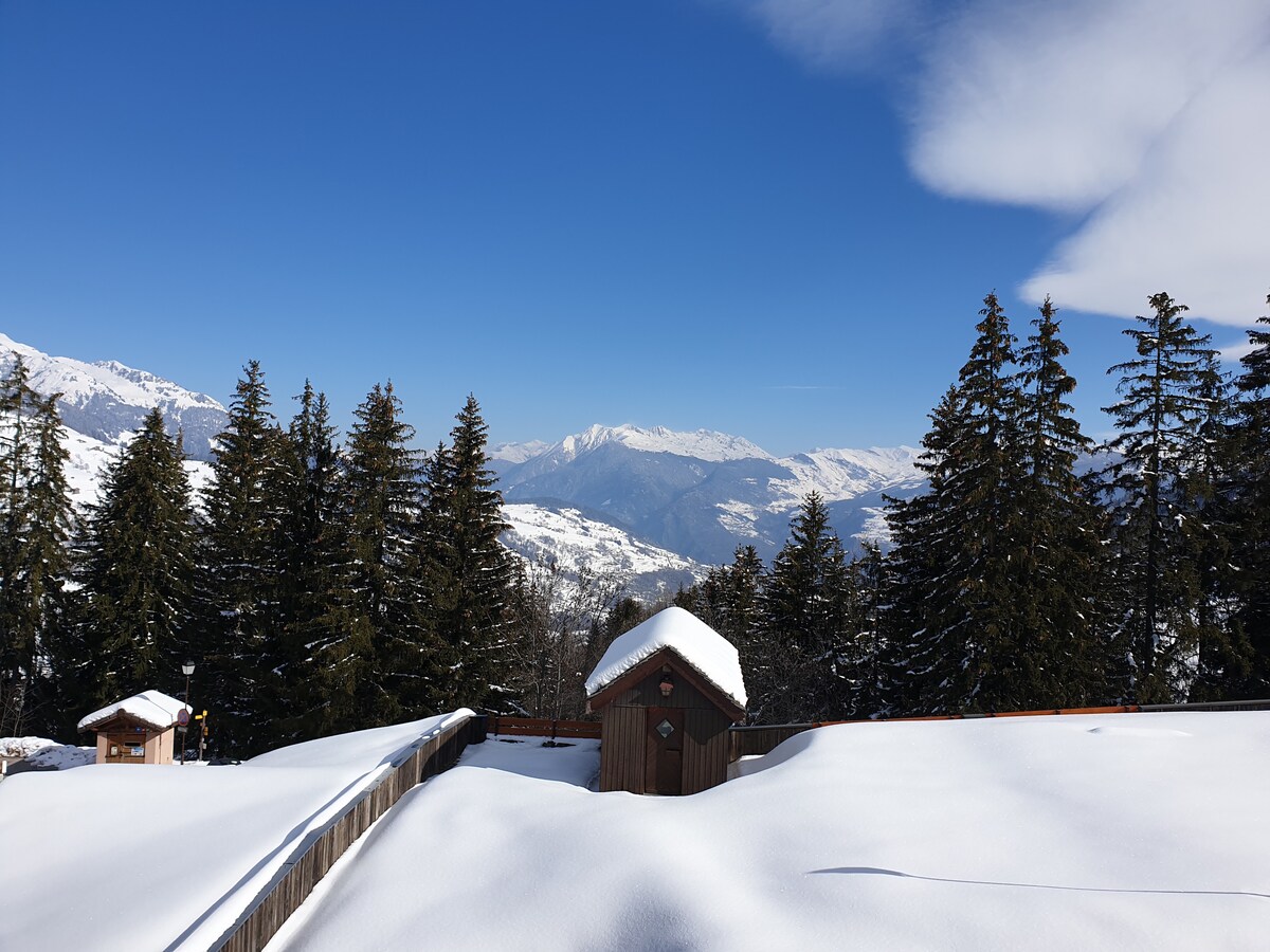 25m2의 4인용 스튜디오 캐빈, 커플 및 어린이 2명에게 이상적인 숙소, 매우 조용한 주택가, 엘리베이터 2대, 상점 및 스키 리프트 근처(스키를 타고 300m 거리에 있는 피에라포트 케이블카). 스키를 신고 출입 가능. 2인용 컨버터블 소파 침대, 수납장, TV가 있는 거실; 통유리창(창문+블라인드), 이층 침대 +서랍장, 가스레인지, 냉장고, 식기세척기, 전자레인지, 커피 메이커, 주전자 등이 있는 간이 주방, 욕조가 있는 욕실. 발코니. 스키 보관함. 침대 시트, 침대 커버, 침구는 제공되지 않습니다.