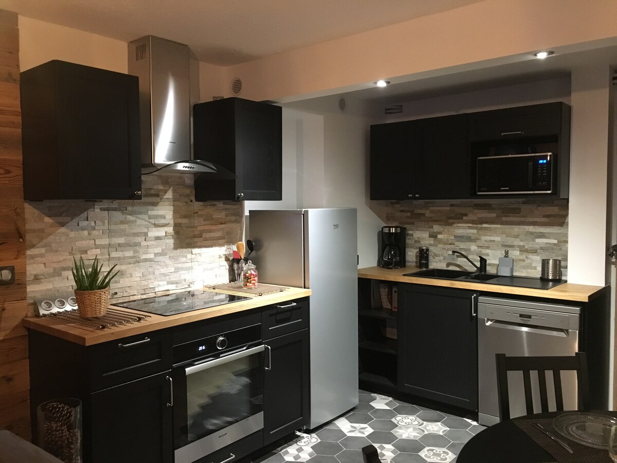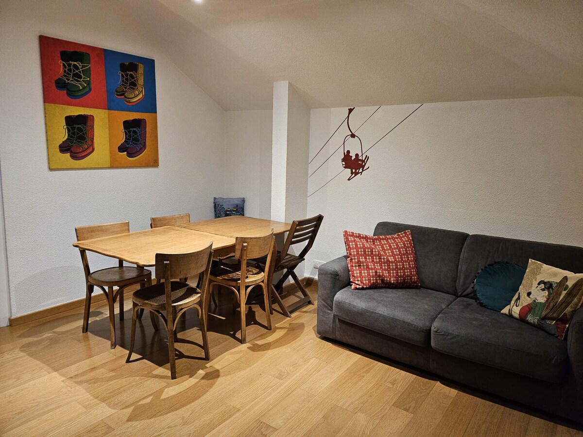 약 32m2의 아름다운 스튜디오, 순수한 산악 정신으로 완전히 개조된 매우 아늑함, 120x190cm의 더블 침대 2개가 있는 넓은 폐쇄형 수면 공간/세탁 건조기가 있는 욕실/160x200의 소파 베드가 있는 독립형 화장실/거실 (두께의 매트리스 18cm)/완비된 주방/연결된 TV/무료 와이파이/남향 발코니 (1층)/게이트 옆 대형 보안 주차장/스키 보관함 리조트 한가운데에 위치한 탁월한 위치.