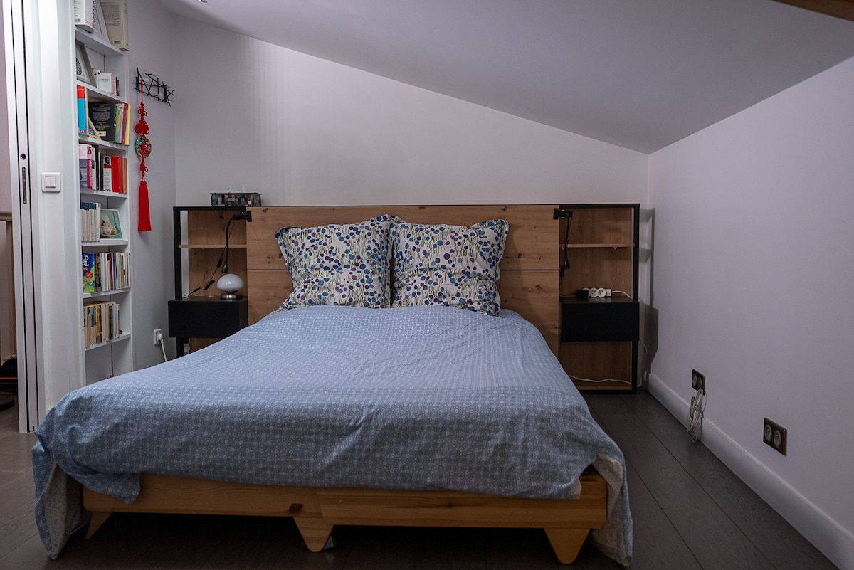 이 숙소는 독특한 스타일을 자랑하며, 30m2의 듀플렉스로 매우 잘 갖추어져 있습니다(냉장고, 전자레인지, 세탁기, 에스프레소 머신, 헤어드라이어, 다리미 및 다리미판…). 침대 3개(140cm 더블 침대 + 1인용 소파 베드)는 어린이 1명(6세 이상) 또는 친구 3명이 있는 커플에게 이상적입니다. 매우 좋은 위치에 있으며 교통이 편리합니다(우르크 운하 근처, 5호선 지하철역 2개 사이, 61번 버스, 벨리브 역) 상점(프랑프릭스, 레스토랑, 베이커리…)에서 가깝습니다.