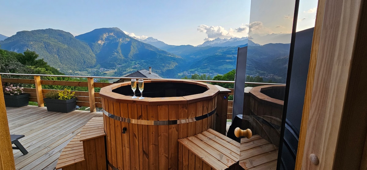 Vous adorerez cette escapade unique et romantique au coeur de la Savoie, en Tarentaise. Ce superbe chalet indépendant Grand Standing de 48 m2 sur deux étages. Le rez-de-chaussée comporte la cuisine intégrée et le salon télé. A l'étage, vous trouverez la chambre, la salle de douche et les toilettes. Une grande terrasse où vous pourrez vous prélasser vous offre une vue à couper le souffle sur la montagne. Vous apprécierez le côté zen avec un bain nordique chauffé et un sauna.