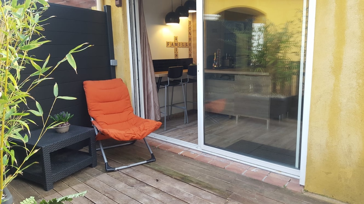 IDEAL* séjour en bord de mer dans un quartier de pécheurs calme et résidentiel. Maison de plein pied de 32 m² à 300 mètres de la plage avec son jardin privatif comprenant un équipement extérieur: coin repas avec son parasol, coin détente avec son salon. En option payante supplémentaires un SPA 4 places.