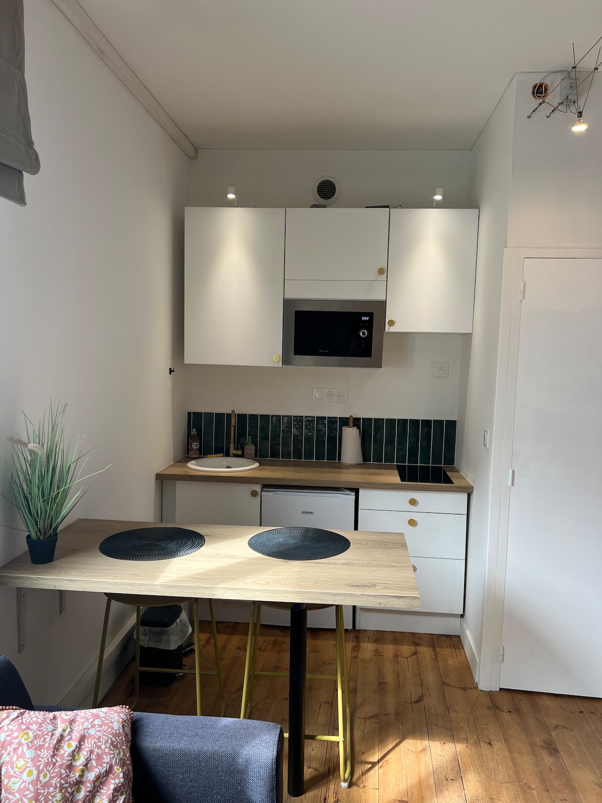 24m2의 스튜디오는 로슈포르의 중심부에 위치하고 있으며, 온천에서 도보로 10분 거리에 있으며, 콜베르 광장과 코르데리 로얄에서 몇 미터 거리에 있습니다. 1층에는 매우 조용하지만, 스튜디오에서는 거리를 내려다볼 수 있습니다. 주방, 인덕션 스토브, 토스터, 주전자, 네스프레소, 별도의 냉동실이 있는 냉장고로 구성되어 있습니다. 침대(160 x 200)는 장식용 칸막이로 방의 나머지 부분과 분리되어 있습니다. 식기세척기가 없다는 점을 유념하시기 바랍니다.