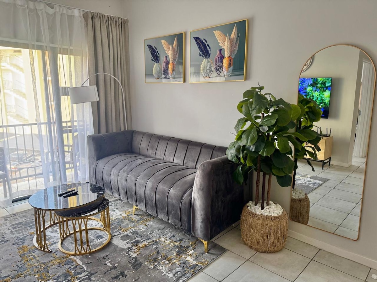 O.R. 탐보 공항에서 가까운 이 현대적인 2베드룸 아파트에서 안전하고 세련된 숙박을 즐기세요. 24시간 현장 경비원과 편리한 24시간 체크인, 초고속 와이파이, 에어컨, UPS 지원 전원 덕분에 전력 분산 중에도 중단 없이 연결 및 충전이 가능합니다. 가스레인지로 간편하게 식사를 준비하고 태양열 샤워의 편안함을 즐겨보세요. 편안함, 안전함, 마음의 평화를 찾는 출장자와 가족에게 안성맞춤입니다.