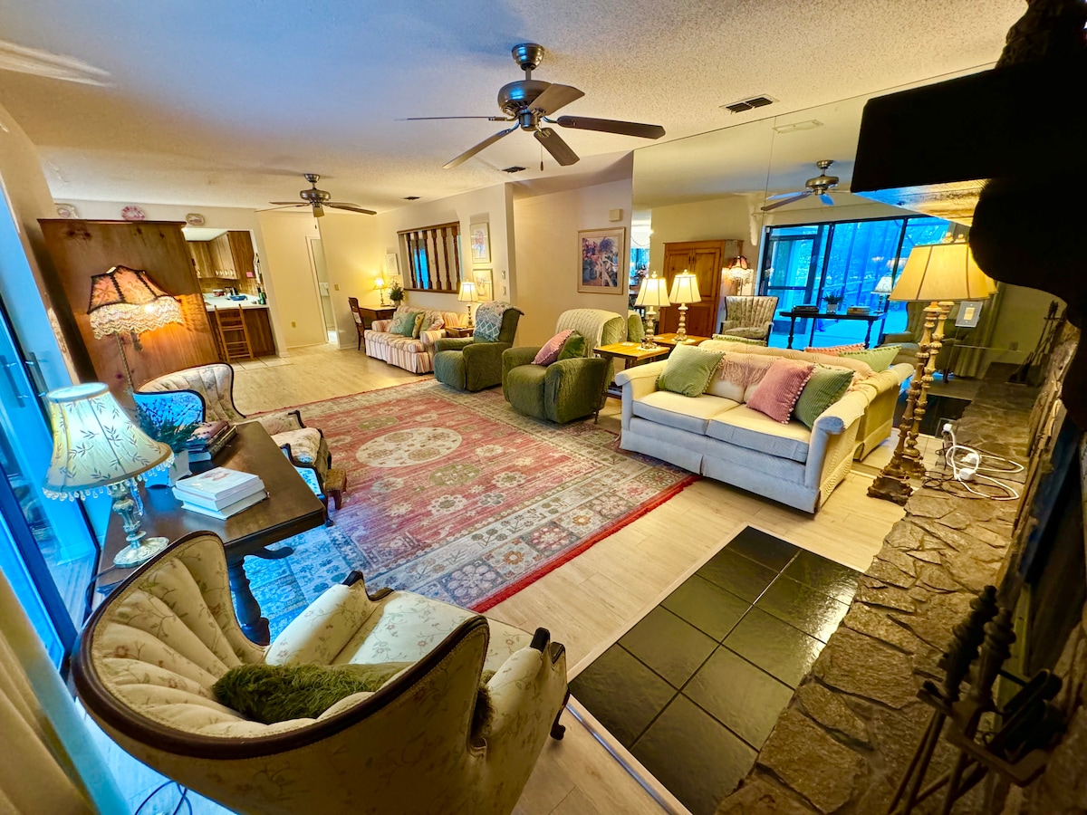 시골 지역에 위치한 10에이커의 아름다운 부지에 자리한 평화롭고 넓은 침실 1개의 게스트하우스에서 걱정은 잊고 휴식을 취하세요. 일출을 감상하며 전용 스크린 포치에서 아침 커피를 즐기거나 밤에는 놀라운 별빛에 압도되어 보세요. 모험을 즐길 준비가 되면 역사적인 시더키(Cedar Key)를 방문하거나, 근처의 매너티스프링스(Manatee Springs)에서 하이킹, 수영, 매너티를 찾아보세요. 이체턱니강에서 카약이나 튜브 래프팅을 즐기거나, 근처의 여러 온천을 방문해보세요. 자연을 사랑하는 사람들의 천국입니다!