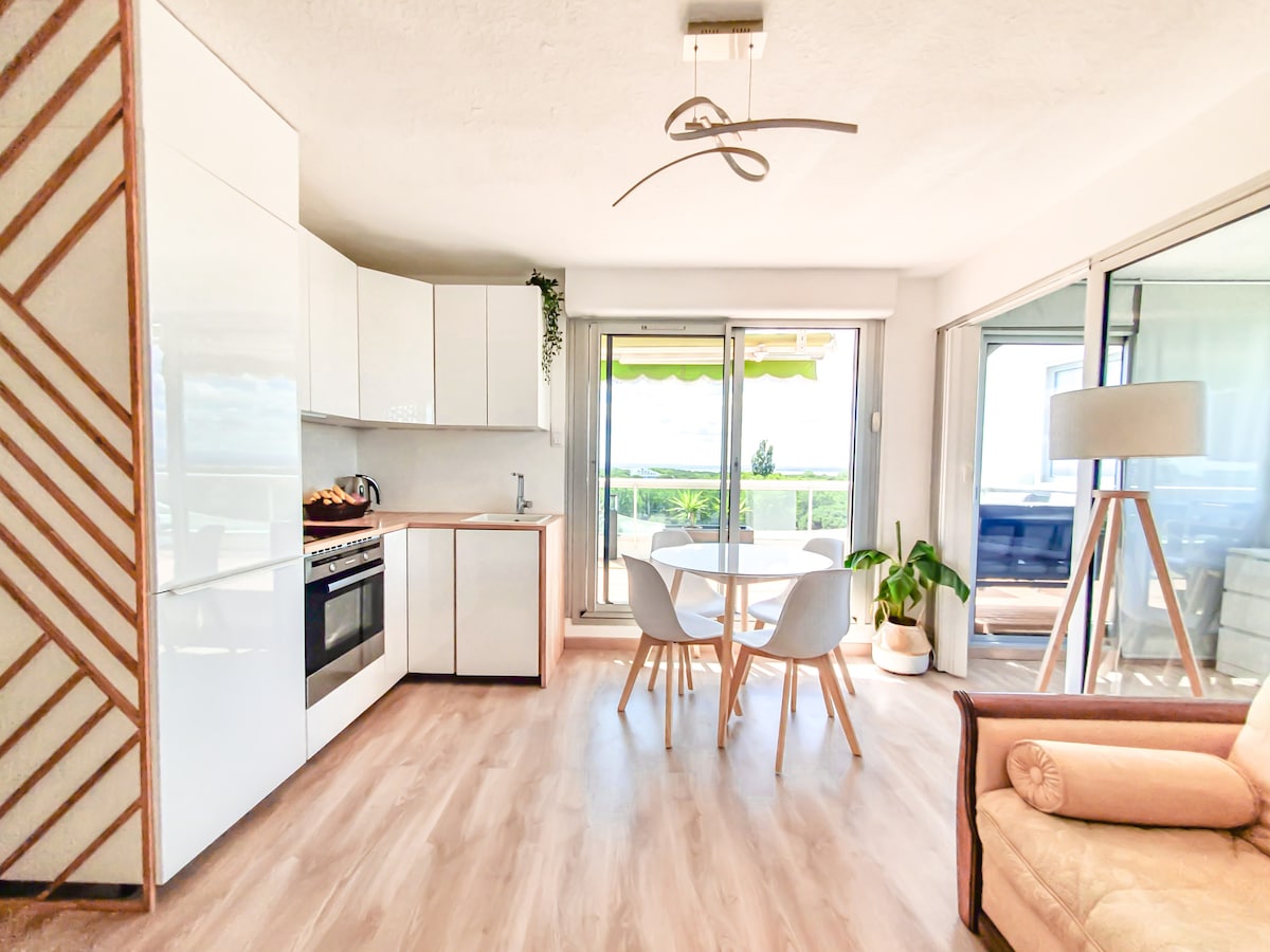 에어컨이 설치된 복층 아파트로, 작은 레지던스의 2층 최상층에 위치해 있으며, 엘리베이터는 없고, 10m2 규모의 테라스가 있습니다. 식기세척기, 세탁기, 건조기, 냉장고, 전자레인지, 인덕션 쿠킹 탑 2개, 네스프레소 커피 머신, 와이파이 등 시설이 완비되어 있습니다. 레지던스 아래 차고에 전용 주차장이 있습니다. 중심지에서 도보로 300m 거리에 위치하고 있으며 길을 건너면 해변이 마주보입니다. 바닥 마루. 중이층에 160cm 침대 1개 및 140cm 가죽 소파 베드 1개.