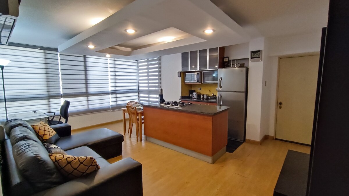 Disfruta de una experiencia con estilo en este alojamiento céntrico. Con una habitación confortable, buena vista a la ciudad, moderno, cómodo, limpio y muy agradable. Ventanas Antiruidos, Contamos con Alexa para que tu experiencia sea única, un espacio que te hará sentir como en casa. Tenemos Internet de 200 megas, Lavadora, Secadora, Aires Acondicionados, Tv de 55" y otro de 50", un Baño remodelado para su disfrute. Una Sala espaciosa y muy moderna. Puedes prender luces, aires y Tv's con Alexa.