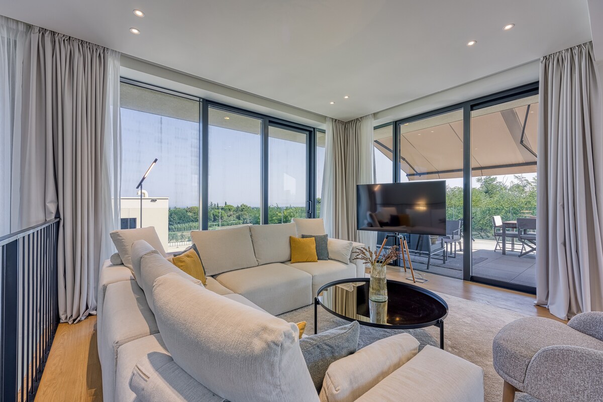 Villa Aurora is a modern holiday home that can accommodate up to 4 people, located in the peaceful residential area of Crveni vrh, just 100 meters from the beach. The terrace and pool offer a stunning view of the sea, Savudrija, and Piran, while golf enthusiasts can enjoy the nearby Golf Club Adriatic. Its proximity to Umag allows guests easy access to restaurants, cafes, and various cultural attractions.