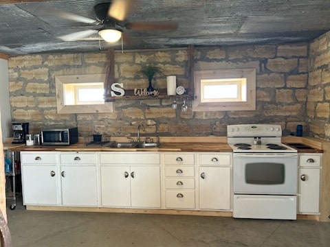 Come enjoy the quiet country with wide open spaces in a 100 year old limestone farmhouse. This is a great place for hunters with several "walk in hunting" places in the area, and we offer a dog kennel. Are you wanting a peaceful place to enjoy the Kansas breeze and relax, this is your place. If you enjoy ATV riding or bicycling there are several country roads to ride with beautiful views directly from the house. We are about 15 minutes from Lincoln, KS and about 20 minutes from Beloit, KS.