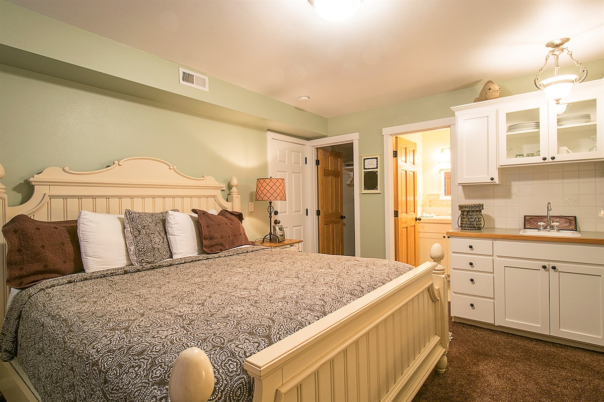 Welcome to this charming suite featuring a kitchenette, full bath, king bed, and private deck. The cozy fireplace creates a warm and inviting atmosphere, perfect for a coupleโs getaway. Located below the main house (Americana), the suite can only be reserved when the main house is unoccupied to ensure your privacy. Enjoy the serene hot tub room and outdoor shower to rejuvenate your senses, or take a short stroll to a seven-mile stretch of sandy Oregon coastline. An ideal retreat for two!