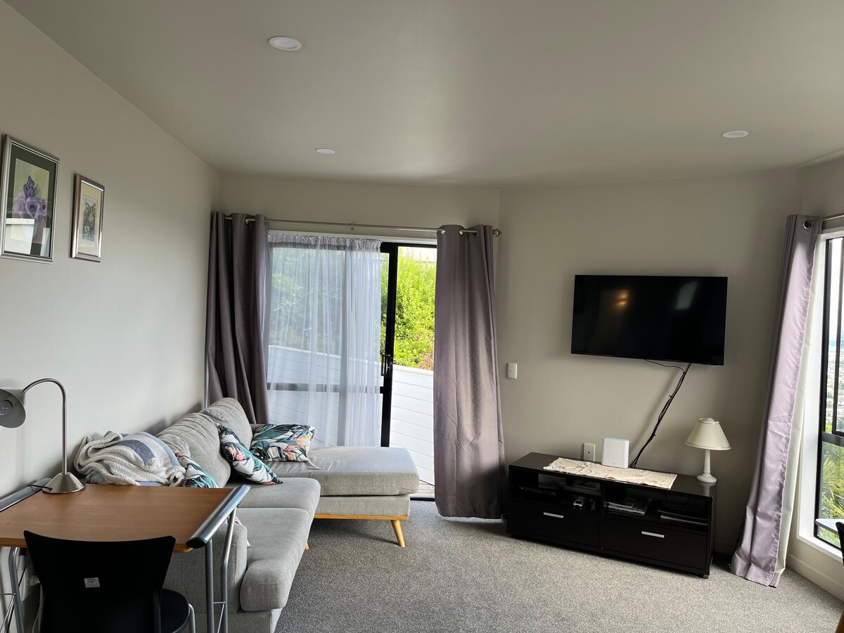 Set in the upper slopes of Cashmere hills. Wake up to the beautiful bird song of the bell birds. Walking distance to coffee shops and walks in the hills or at the bottom of the hill a beautiful stroll along the Heathcote River Outstanding views from this sunny 1 bedroom apartment, capturing Christchurch City and the Kaikoura mountains. 15 minute drive to the city centre, or a 5 minute walk to the bus stop.