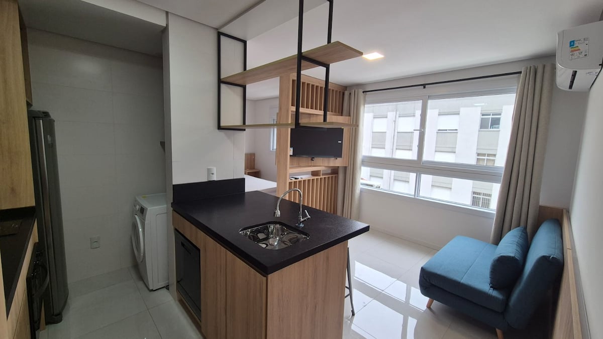 ⭐️ 이제 알렉사와 함께 자동화되었습니다! LED 스마트TV 50인치, 무료 주차 공간, 24시간 컨시어지, 게스트 3명(매트리스), 수영장, 피트니스 센터, 세탁, 옥상 19층, 24시간 공동 작업 공간! 에어프라이어, ⟶ 전자레인지, 토스터기가 있는 주방! • ⟶ PUCRS까지 2분 • 영사관과 시내까지 15분 • 초고속 와이파이 • 엘리베이터 • 에어컨 • 넷플릭스, 유튜브, 디즈니+, 아마존, 글로보플레이 등 • 유연한 체크인 • 반려동물 동반 가능(사전 통보) • 인근 슈퍼마켓! 수건과 침구 포함!:)