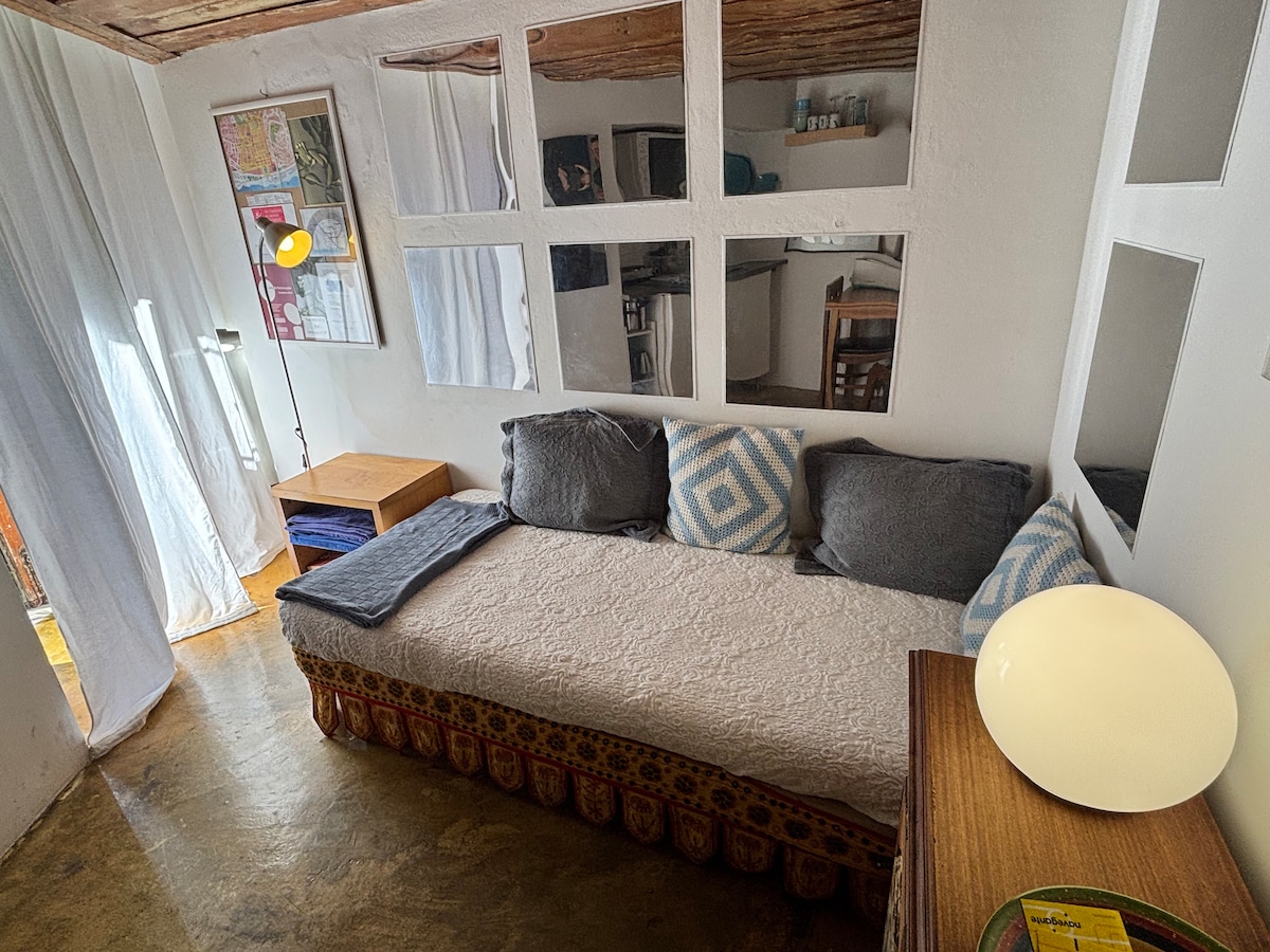 플랫과 전체 지역은 19세기 이전의 시대이며 장소의 느낌을 존중하는 방식으로 가구가 장식되어 있습니다. 이 플랫에는 킹사이즈 침대가 있는 큰 스위트룸 1개가 있으며, 킹사이즈 침대는 분리할 수 있으며 싱글 침대 2개, 옷장 1개, 큰 욕실 1개, 외부 소파로 휴식을 취할 수 있는 테라스가 있습니다. 거실(더블 소파 베드 포함), 미국식 주방, 작지만 완비된 욕실, 야외에서 아침 식사를 할 수 있는 테라스가 있습니다.