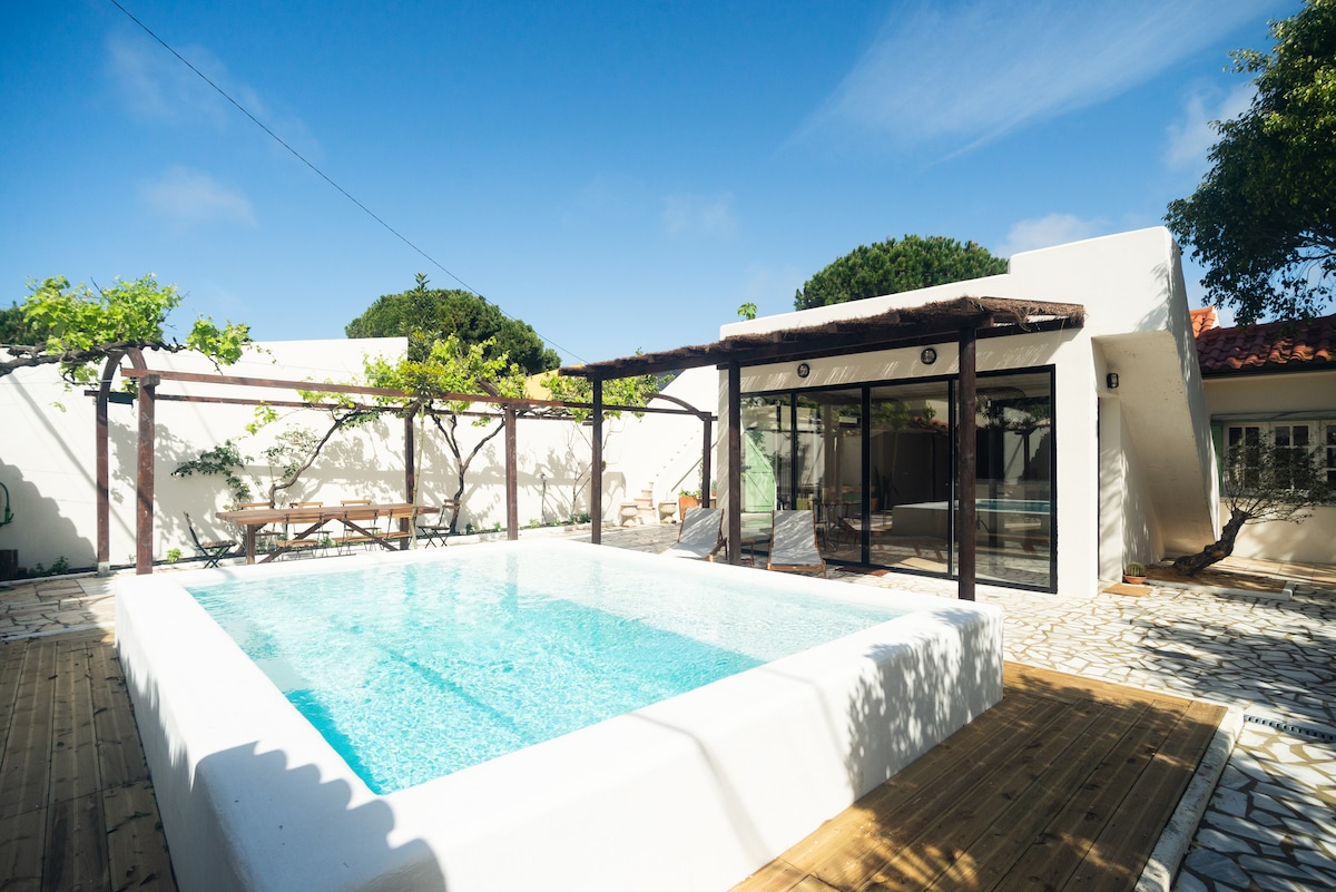 수영장이 있는 멋진 저택, 해변에서 5분 거리