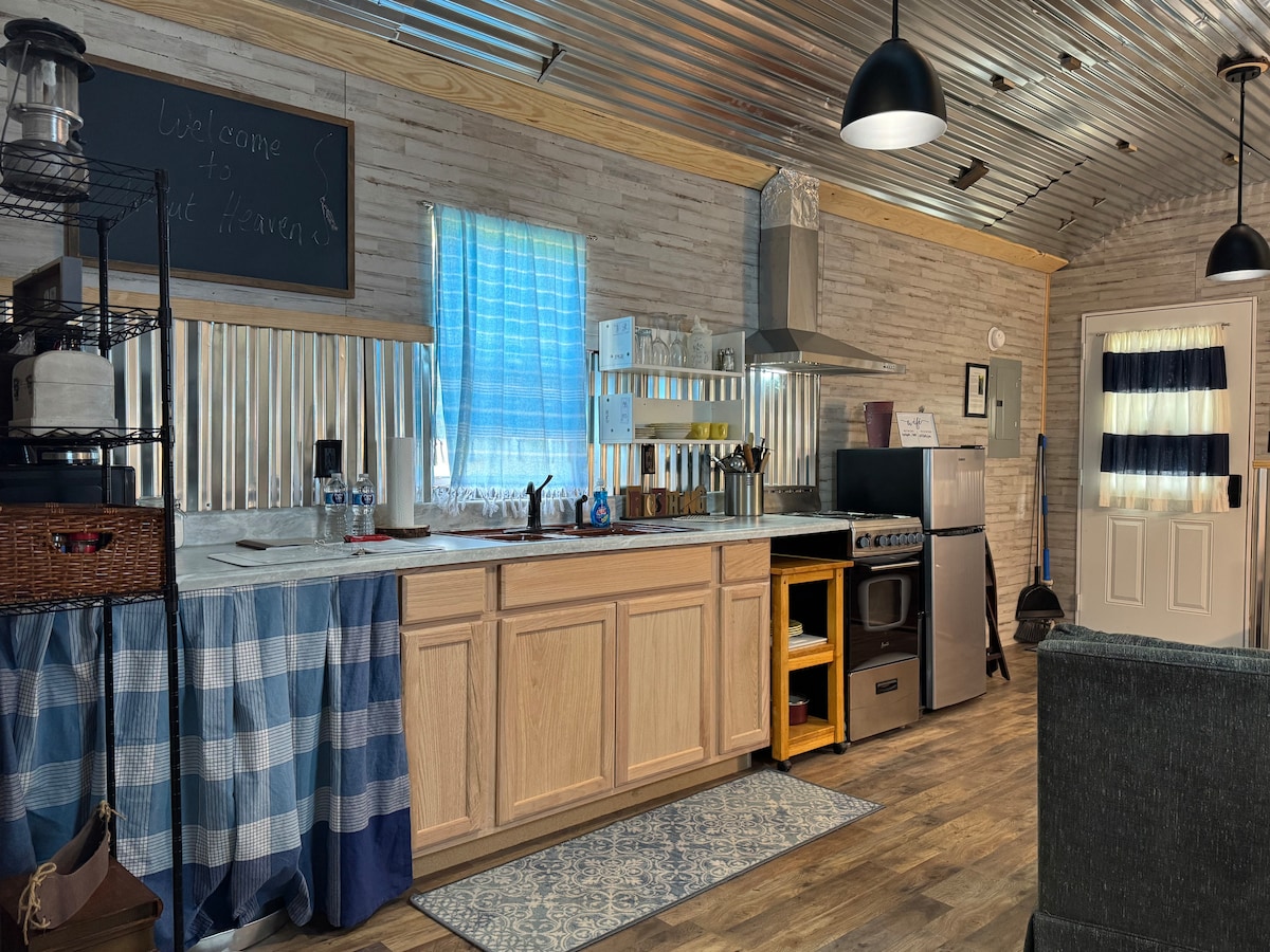 이 강변 오두막은 진정한 개성을 지닌 친근한 작은 숨은 곳입니다. 저희 1룸 오두막은 강에 접근할 수 있고 강의 전망을 자랑하며, 퀸사이즈 침대와 퀸사이즈 푸톤에서 4명이 잘 수 있는 공간을 갖추고 있습니다. 고급 조리 도구, 풀사이즈 냉장고, 오븐이 있는 전기레인지, 완비된 커피 바가 있는 주방. 지붕이 있는 선착장은 낚시에 사용할 수 있으며, 보트를 가져오신다면 선착장을 이용하여 보트를 보호할 수 있습니다. 이 오두막은 반려동물 친화적이지 않습니다!
