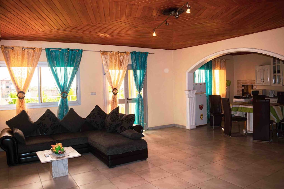 〉Renovated in 2018, enjoy the comfort and calm of this spacious 120m² fully equipped apartment. ・Residence approved by the Ministry of Tourism ・Safe neighbourhood ・A team present 24 hours a day ・South-facing balcony ・Air conditioning ・Fully equipped kitchen : microwave, hob, etc... ・TV set + free wifi ・Baby equipment ・Partys allowed ・Near shops ★ 100% UNIQUE ★ 〉Book now your stay in Douala.