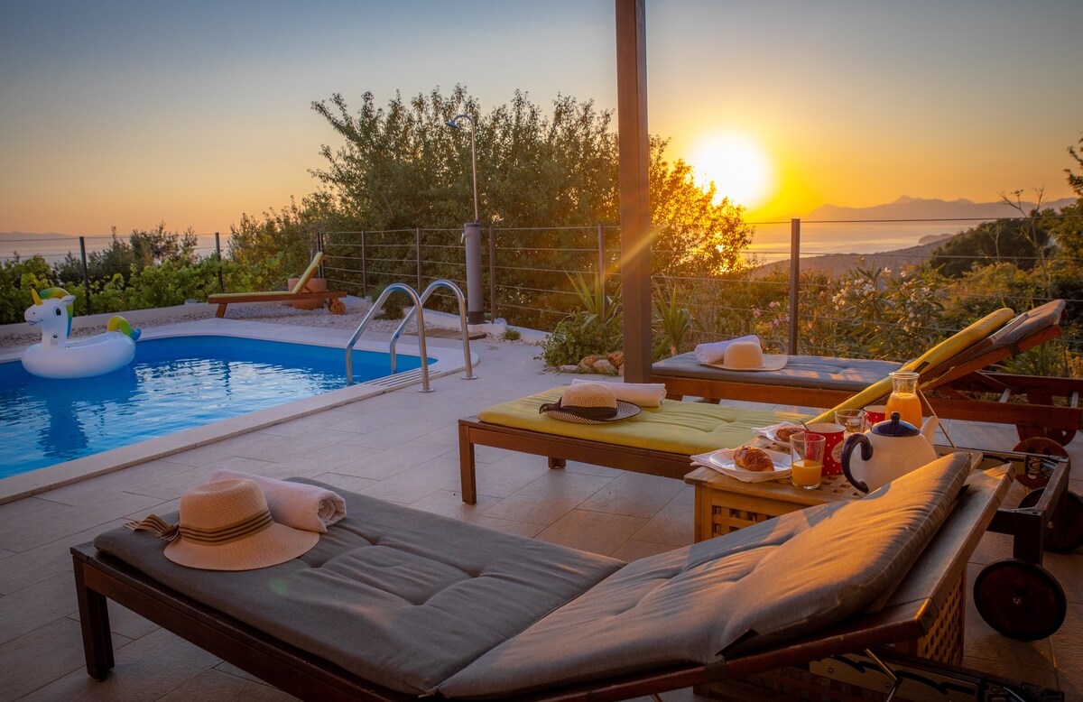 Olive tree surrounded villa with sea view