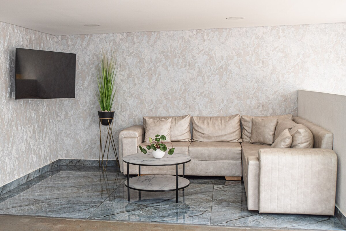 ☀ 환영합니다☀ @ 엘 포블라도에 위치한 아름다운 스튜디오 아파트는 자연으로 둘러싸인 도시의 독점 구역에서 편안함과 탁월한 위치를 제공합니다. 초고속 무선 인터넷은 170mbps입니다. 숙소는 Av 5분거리에 위치해있습니다 포블라도에서 도보로 15분 거리에 있으며, 대형 공원, 슈퍼마켓, 쇼핑 센터, 멋진 레스토랑 외에도 도보로 15분 거리에 있습니다. 두 블록만 가면 아름다운 공원이 있습니다;)