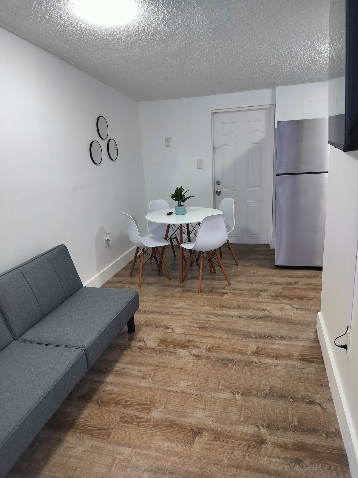 중심부에 위치하면서도 편리한 숙소에서 편안한 시간을 보내세요. 예약하기 전에 전체 설명을 읽어주세요. 에어컨은 중앙 시스템이며 항상 화씨 73도(섭씨 22도)로 설정되어 있습니다. 에어컨 온도는 변경할 수 없습니다. 아파트에는 여분의 담요와 선풍기가 마련되어 있습니다. 조리에 필요한 모든 것이 갖춰진 주방 1개, 욕실 1개, 퀸사이즈 침대, TV, 옷장이 있는 방 1개, 의자 4개 테이블이 있는 거실, 거실에 더블 침대 1개(트윈 사이즈 매트리스) 및 발코니. 주차 공간 1개