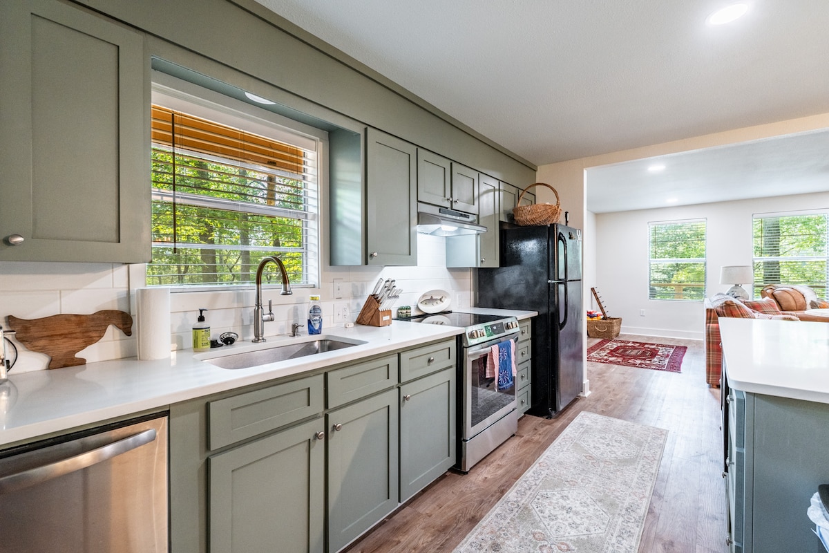 이 독특한 숙소는 개성 넘치는 스타일을 자랑합니다. 아칸 뷰의 화이트 리버에서 불과 500야드 떨어진 실라모어 크리크가 내려다보이는 절벽에 위치한 현대적이고 가벼운 인더스트리얼 인테리어. 전용 화덕, 피크닉 공간, 슬 그릴을 이용하실 수 있습니다. 경치 멋지고 위치는 모든 것의 중심에 있습니다. 시내의 유명한 포크 뮤직 스퀘어에서 몇 분 거리에 있으며 블랜차드 스프링스까지 불과 몇 마일 거리입니다. 말 그대로 국립 숲의 가장자리에 있습니다. 마음에 드실 거예요!