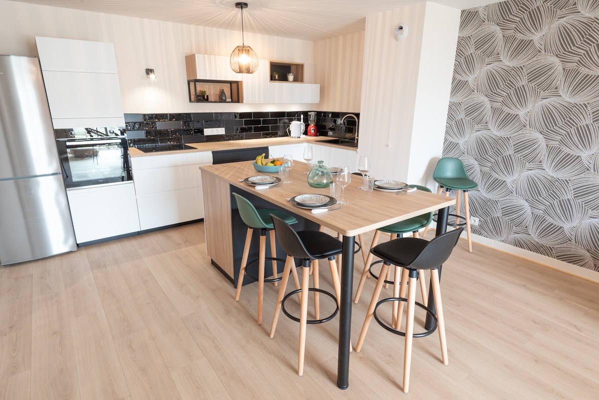 해안에서 가장 아름다운 해변 중 하나에 가까운 이 새 집에 오신 것을 환영합니다! 시설이 완비된 이 숙소에는 가족, 친구 그룹, 여행 전문가, 이동성이 떨어진 사람들을 수용할 수 있는 3개의 모듈식 침실이 있습니다. 거실에 소파베드가 있고 욕실이 2개 있습니다. 바베큐가 가능한 테라스가 남쪽을 향하고 있습니다. 해변은 400m 거리에 있으며 상점은 1km 미만 거리에 있습니다. 현관문 옆 주차장