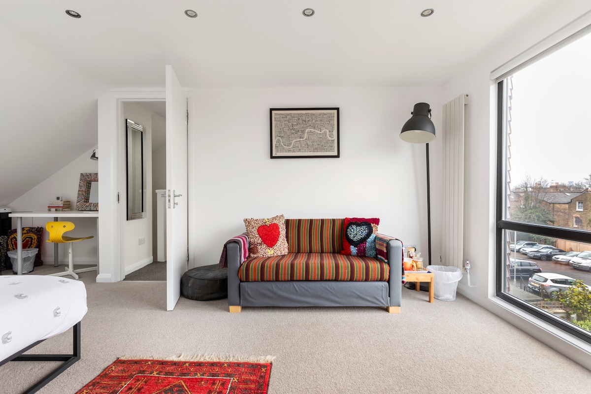 현대적인 목조 프레임 하우스의 1층에 있는 작은 독립형 스튜디오 객실. 이 독특한 거리에 면한 공간에는 공용 작업 스튜디오를 들여다볼 수 있는 커다란 후면 내부 창문이 있습니다(커튼 있음). 번잡한 카페, 갤러리, 공원, 명소 근처에 위치하고 있으며, 인근 교통편을 통해 런던 중심가와 잘 연결되어 있습니다. 편안하고 영감을 주는 도시를 탐험할 수 있는 가족용 라이브 워크스페이스입니다.