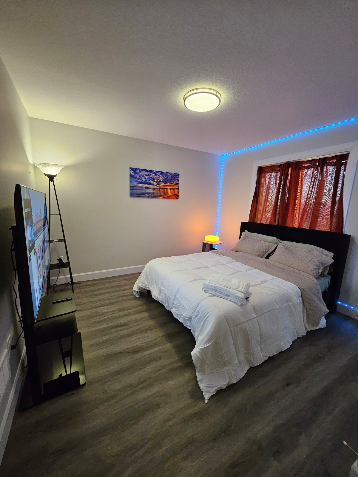 현대적인 침실 3개, 욕실 2개 지하 스위트 – 프라이빗하고 편안한 이 넓은 지하 아파트는 가족, 친구 또는 출장자에게 안성맞춤입니다. 전용 출입구가 있어 나만의 공간에서 편안함과 편리함을 누릴 수 있습니다. 마음에 드실 만한 것: • 편안한 침대와 넉넉한 수납 공간이 있는 침실 3개 • 깨끗한 수건과 필수품이 구비된 욕실 2개 • 좌석과 스마트 TV가 있는 밝은 거실 공간 • 가전제품이 있는 주방 시설 완비
