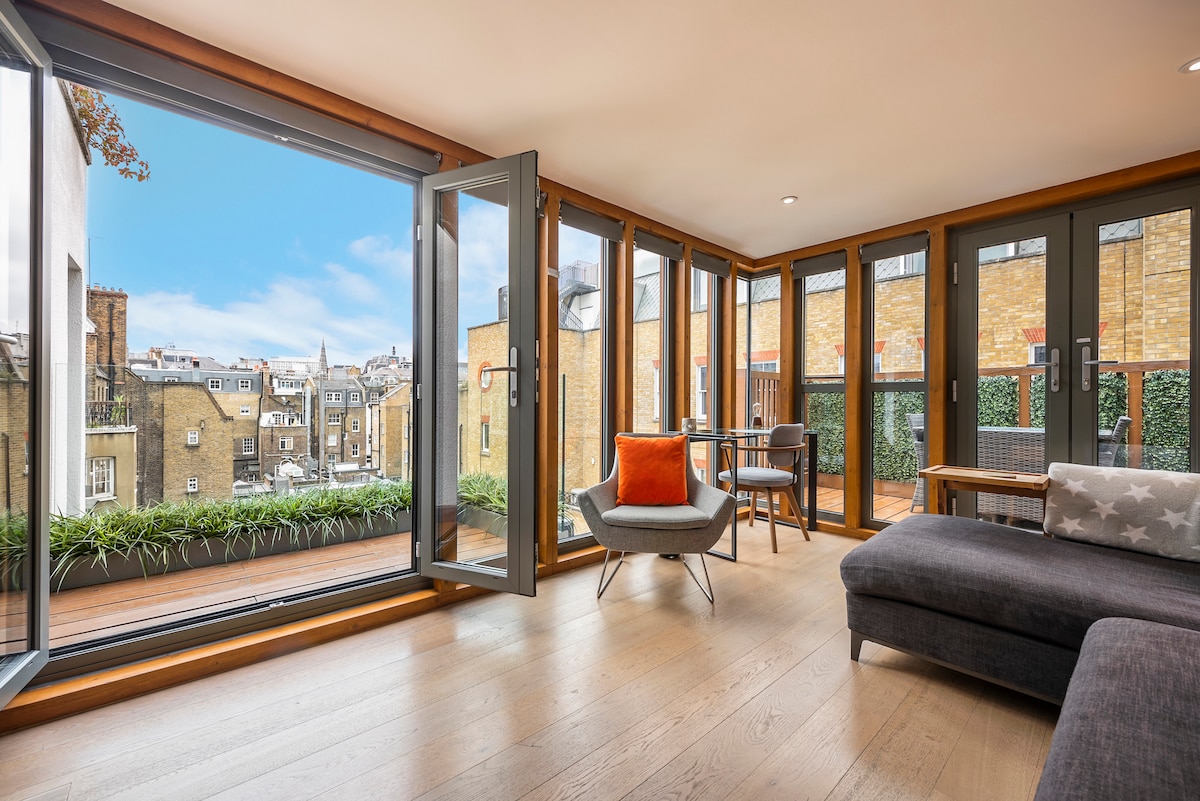 옥스퍼드 스트리트 근처의 젠 아파트+테라스(에어컨 구비)