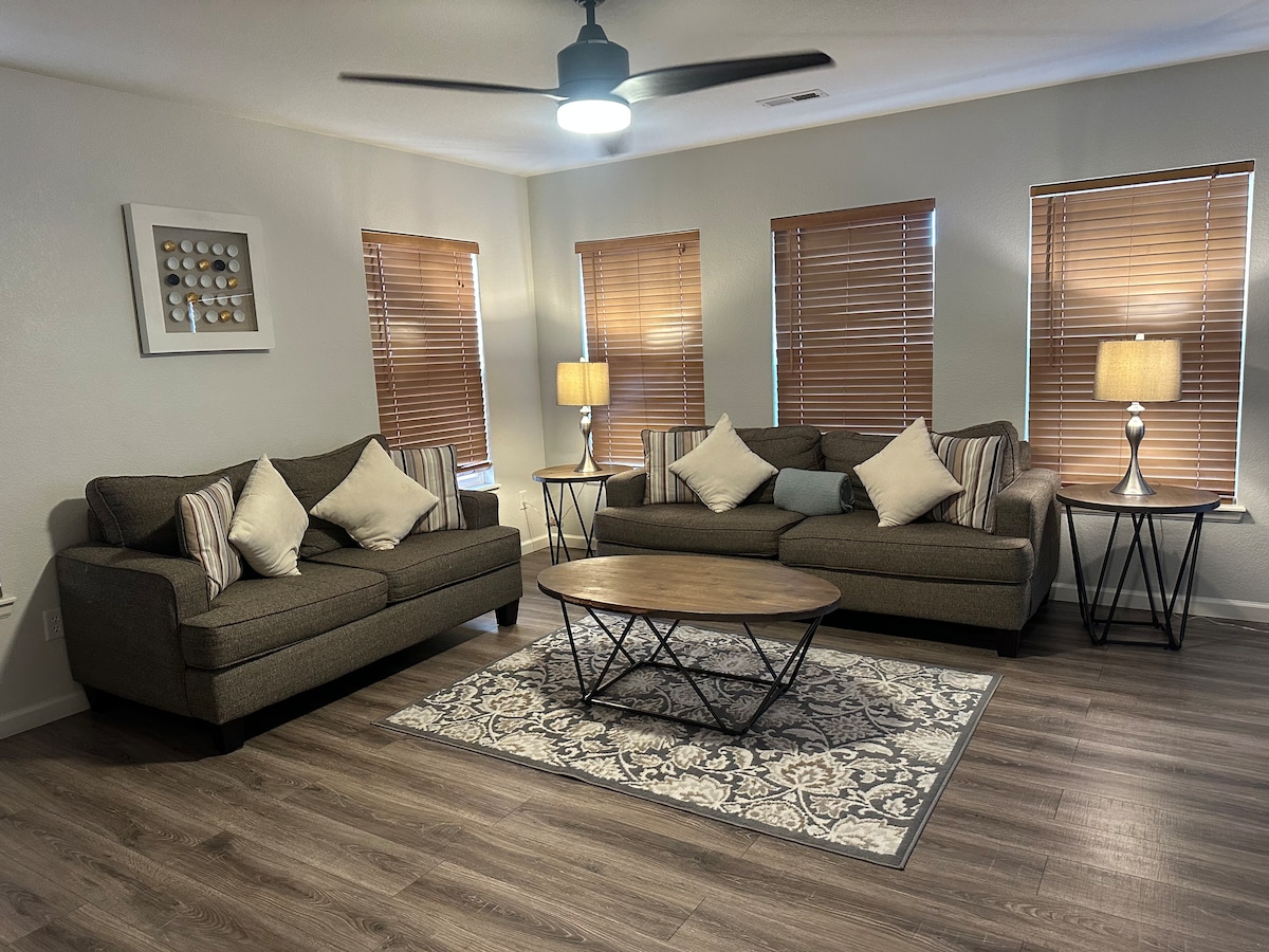가구가 완비된 침대 3개/욕실 2개가 있는 이 숙소에 앉아 휴식을 취해보세요. 차고 주차장 2개, 데크, 전용 뒷마당이 있습니다. 가족 휴가, 친구 그룹 또는 직장인에게 완벽합니다. 수상 경력에 빛나는 공원, 집라인, 승마, 승마, 양조장, 다양한 레스토랑과 가까운 작은 마을 매력. 아름다운 캐슬우드 캐니언 주립공원에서 가까워 하이킹을 쉽게 즐길 수 있으며 아울렛 몰과 프롬나드까지 몇 분 거리에 있습니다. 최대 성인 6명과 유아 1명까지 숙박 가능합니다.