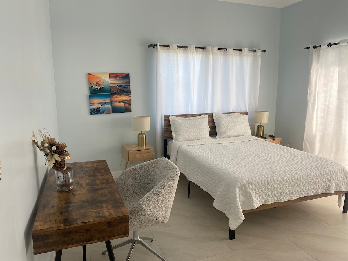 NON SMOKING PROPERTY Relax at this peaceful place to stay.Where there is peace and quiet.This newly built home,is designed with the family in mind. 2BR,sleeps 6. w Locally hand crafted designed beds for your relaxation. This dwelling,offers a roof top terrace/deck with loungers and a hot tub(Conditions apply) that allows you to capture a great island sunset .Dine on the deck. Fully furnished kitchen. Washer and dryer Outdoor shower for after beach outings. Respectful people are welcomed