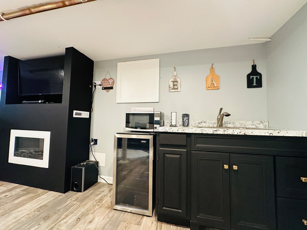 전용 출입구를 갖춘 넓고 가구가 완비된 지하 아파트입니다. 욕실, 거실, 주방(가스레인지 미포함)이 완비된 이 편안한 침실 1개짜리 아파트는 며칠 동안 방문하거나 휴식을 취하고 싶은 모든 사람에게 적합합니다. 이 아파트에는 간편한 노상 주차(진입로 주차 불가)와 무료 와이파이가 포함됩니다. 흡연은 금지되어 있으며, 흡연 시 225달러의 벌금이 부과됩니다.