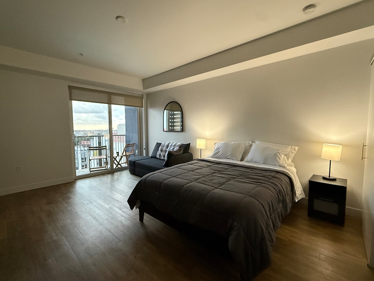 Beautiful 1 Bedroom condo on historical Broadway Blvd. Right next to Ace Hotel, this building used to be the largest costume shop in the world. Actor's like Charlie Chaplin used to come and pick up their attire here. 20ft+ceilings & views of the sunsets and city lights have you feeling the vibes during the evening hours. Includes TV and fast WIFI.