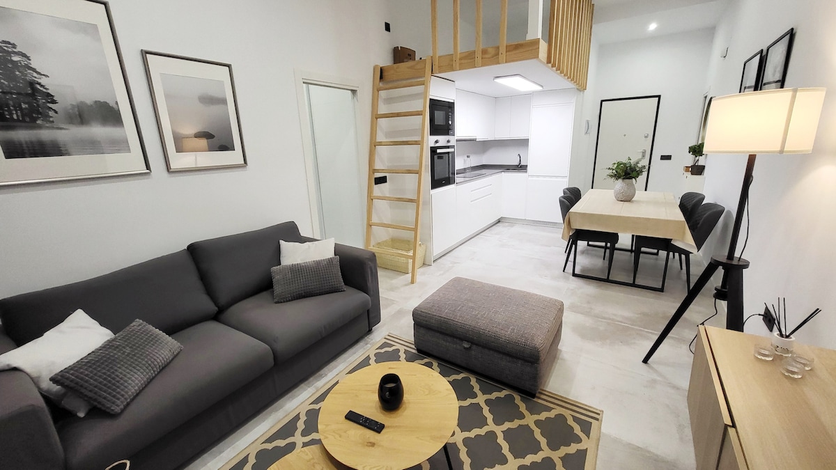 Apartamento moderno y elegante en el centro de Fuengirola, ideal para hasta 4 personas. Cuenta con 1 cama doble, sofá cama y cocina equipada con estilo minimalista. A 10 minutos a pie de la playa, 8 minutos de la estación de tren (conexión directa a Málaga y el aeropuerto) y 7 minutos de la estación de autobuses. Frente al Recinto Ferial, garantizando descanso total por su ubicación tranquila. Zona con mercados, restaurantes, tiendas y transporte público cercanos. ¡Perfecto para tu estancia!