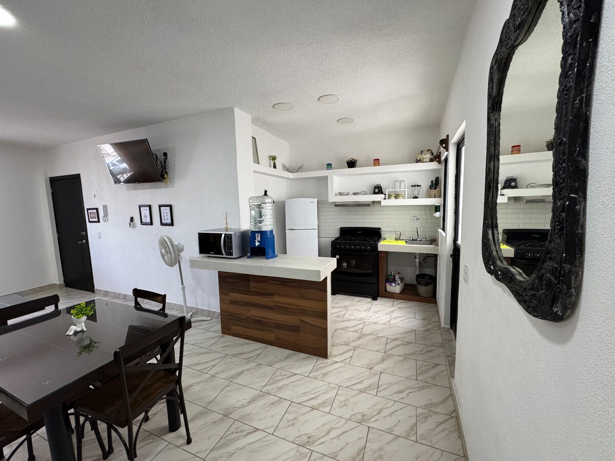 저희 숙소는 트랄테낭고, 사카테카스에 머무르기에 최고의 선택이며, 저희 숙소는 100% 가족 분위기에서 여러분이 자신의 집처럼 느끼게 해줄 것입니다. 제공 사항: 침실 3개 (에어컨 및 난방 시설이 갖춰진 침실 2개) 2 욕실 주방 뒷마당 차고 거실 커플 또는 6인 가족에게 적합합니다. 와이파이, 스트리밍 플랫폼이 있는 TV, 온수 및 시설이 완비된 주방. 중심지에서 5분 거리에 위치한 훌륭한 위치.