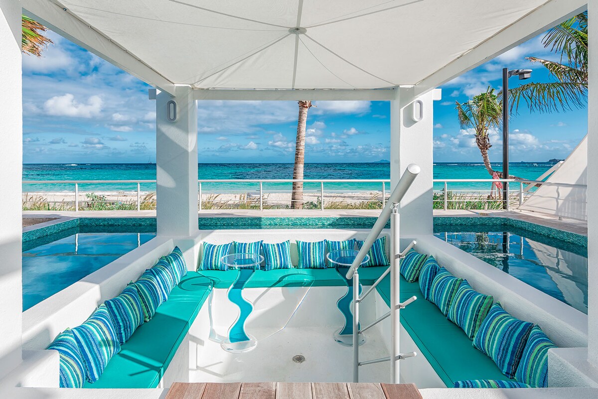An exceptional beachfront loft on Grand Case Beach, offering majestic ocean views and a prime position above the iconic Rainbow Café. In high season, a stylish and trendy atmosphere sets the tone until about 11 p.m. Sunbeds can be reserved either directly or through us—but guests who book with our help enjoy privileged touches. A luminous, sophisticated retreat steps from Grand Case’s finest venues.