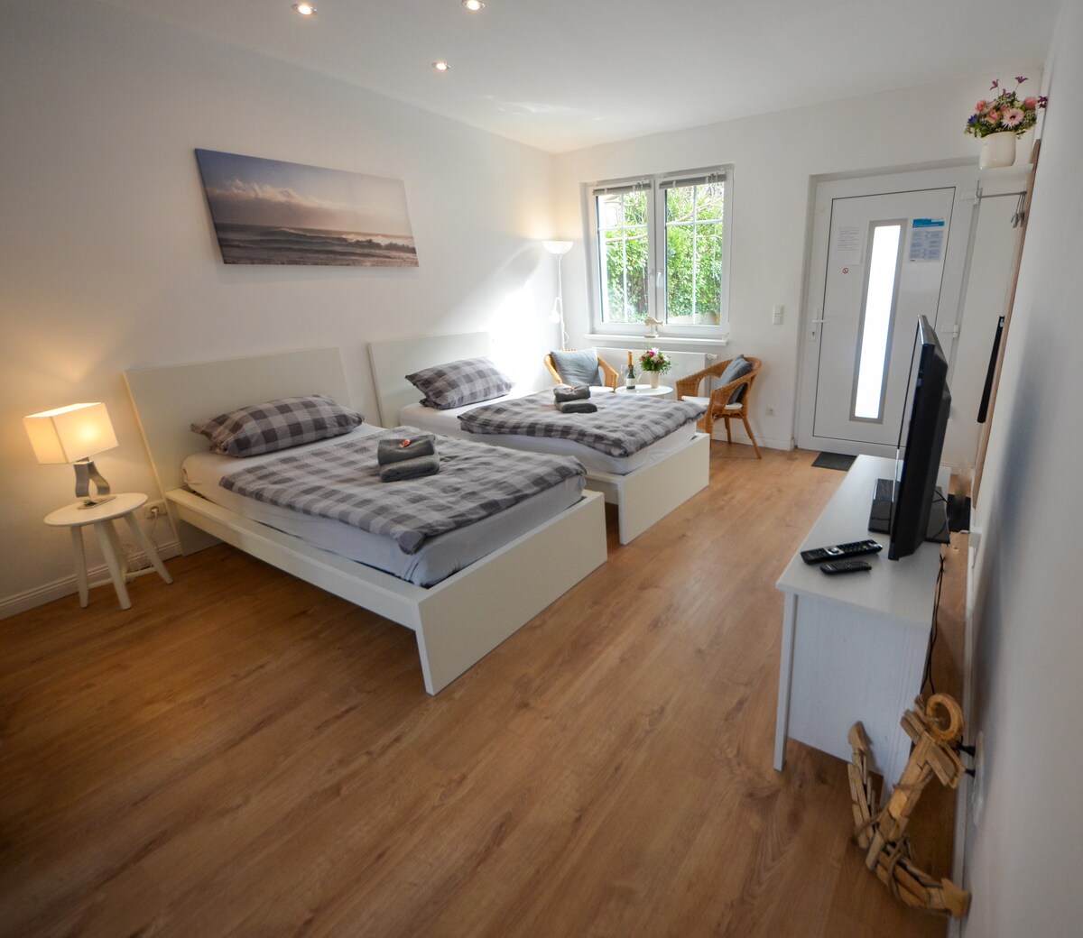 Das abgeschlossene Apartment mit eigenem Eingang hat 20 qm mit separatem Duschbad und einem Wohn-Essbereich mit kleiner Küche. Das Apartment liegt ruhig in einer Wohnstraße. Die Touristensteuer i.H.v. 2 Euro pro Nacht ist im Preis enthalten. Es wird nur an Einzelpersonen vermietet.