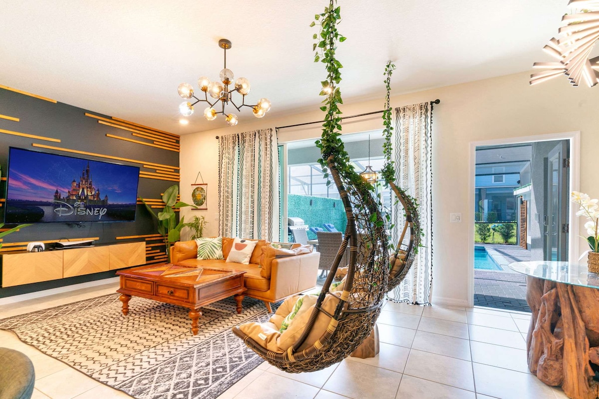 Welcome to our perfect retreat! Subtle Disney accents throughout included! This stunning 2300 sq. ft. modern villa in Davenport, FL, offers luxury and comfort. Enjoy the Nemo-themed black-light games room, a heated pool, and so much more. 25 minutes from Disney, it's close to golf, shopping, and dining. Inside, relax in spacious living areas, a chef's kitchen, and a private, peaceful lot. Located in the gated Aviana Resort, enjoy fitness access and a large oasis pool. Book your stay today!