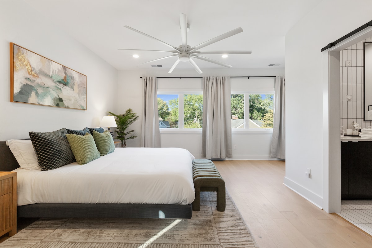 매력적인 로프트 스타일의 숙소로 복고풍 분위기, 절충적인 예술 작품, 아치형 천장이 있습니다. 세기 중반의 세련된 분위기를 자랑하는 이 공간에서 휴식을 취하세요. 소프스톤 표면이 있는 주방에서 저녁 식사를 요리하고 파티오의 옛날 스타일 테이블에서 야외 식사를 즐겨보세요. 오리지널 하드우드와 이 오래된 집의 매력을 유지하면서 모든 새로운 고급 호텔 침구로 완전히 리모델링되었습니다. 1층에 침실 2개, 2층에 침실 2개가 있어 모든 연령대가 쉽게 접근할 수 있습니다. 시내와 엑스포 센터까지 10분 거리입니다.