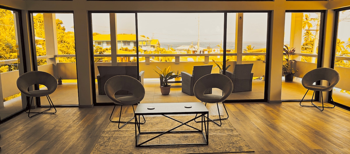 Welcome to your perfect getaway! Located in the prestigious gated community of Tobago Plantations, this condo offers modern luxury with classic comfort. Guests are steps away from three community swimming pools and the balcony opens up to the famous Tobago Plantations golf course with a captivating ocean view. This unit also boasts amenities such as 24H security, dedicated parking, high-speed internet, a fully equipped kitchen, and Netflix on a 55" flat-screen TV.