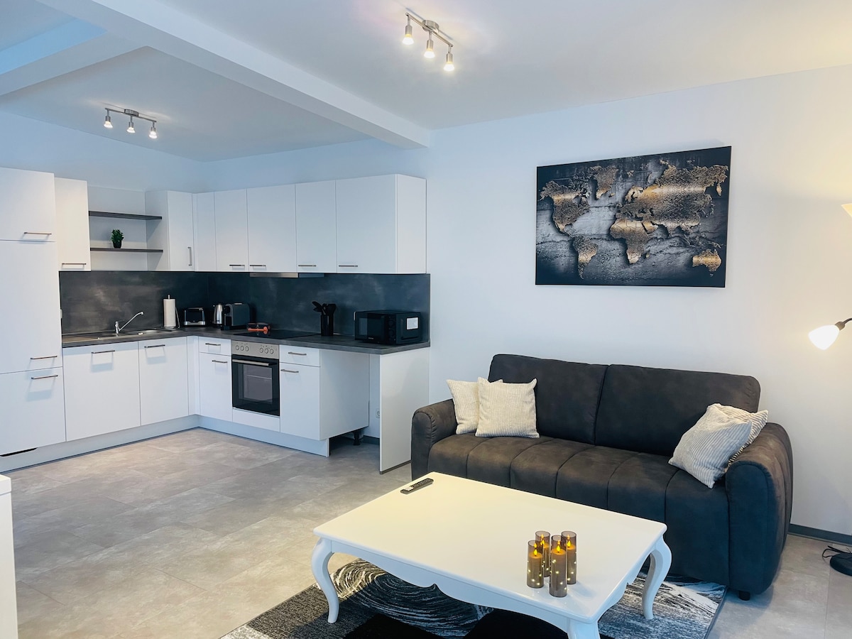 루드비히슬루스트 중심부에 위치한 아늑한 아파트인 크론스튀브헨에 오신 것을 환영합니다. 아파트는 잘 관리된 아파트 건물에 위치해 있으며, 1층에 있으며, 계단 없이 편안한 숙박에 이상적입니다. 편안한 박스 스프링 침대(1.80 x 2.00m)가 편안한 밤을 보장합니다. TV와 가스레인지, 커피머신, 토스터가 완비된 기능성 주방이 있어 하루를 편안하게 시작하거나 아늑한 저녁을 보내기에 완벽합니다.