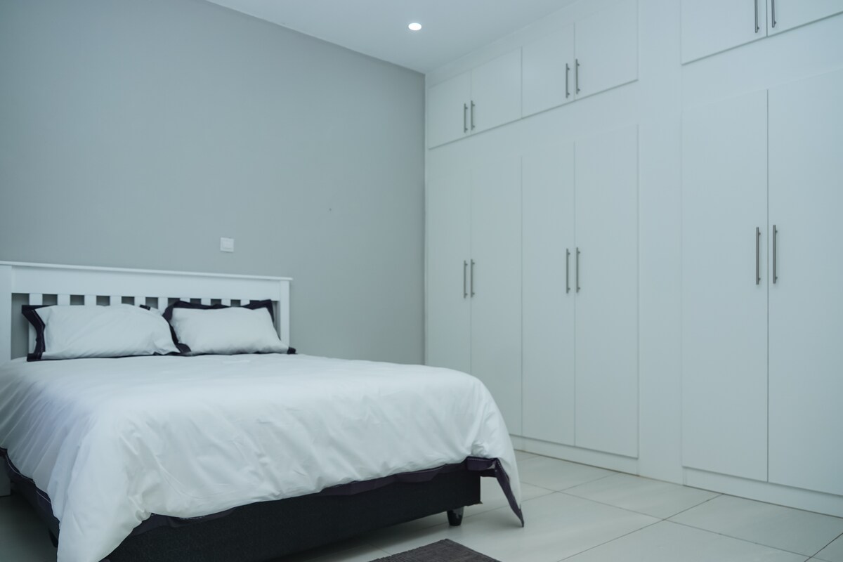 이 아늑한 침대에는 가구가 완비되어 있으며, 작은 전용 앞마당, 전용 주차장이 있으며 간이 주방에는 냉장고/냉동고, 스토브, 전자레인지, 세탁기, 기본 도자기 및 식기류가 있습니다. 번잡함에서 벗어날 수 있는 안전한 고요한 숙소에 자리잡고 있습니다. 루사카에서 단기 또는 장기 숙박을 하는 싱글 전문가를 위한 이상적인 숙소입니다. 추들리그의 무날리 몰까지 도보로 10분, 이스트 파크 몰까지 차로 15분 거리에 있으며 공항까지 쉽게 이동할 수 있습니다.