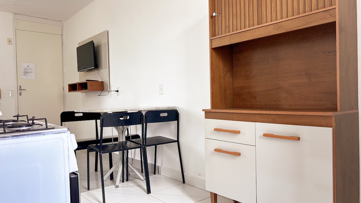 Espaço tranquilo, funcional e aconchegante, localizado no centro da cidade, próximo a restaurantes, farmácias, padarias, hospitais, banco, shopping, etc. Ideal para uma pessoa sozinha ou casal, em viagem a trabalho ou lazer. Ambiente pronto para lhe receber com cozinha equipada, recém reformado, além de uma decoração moderna.