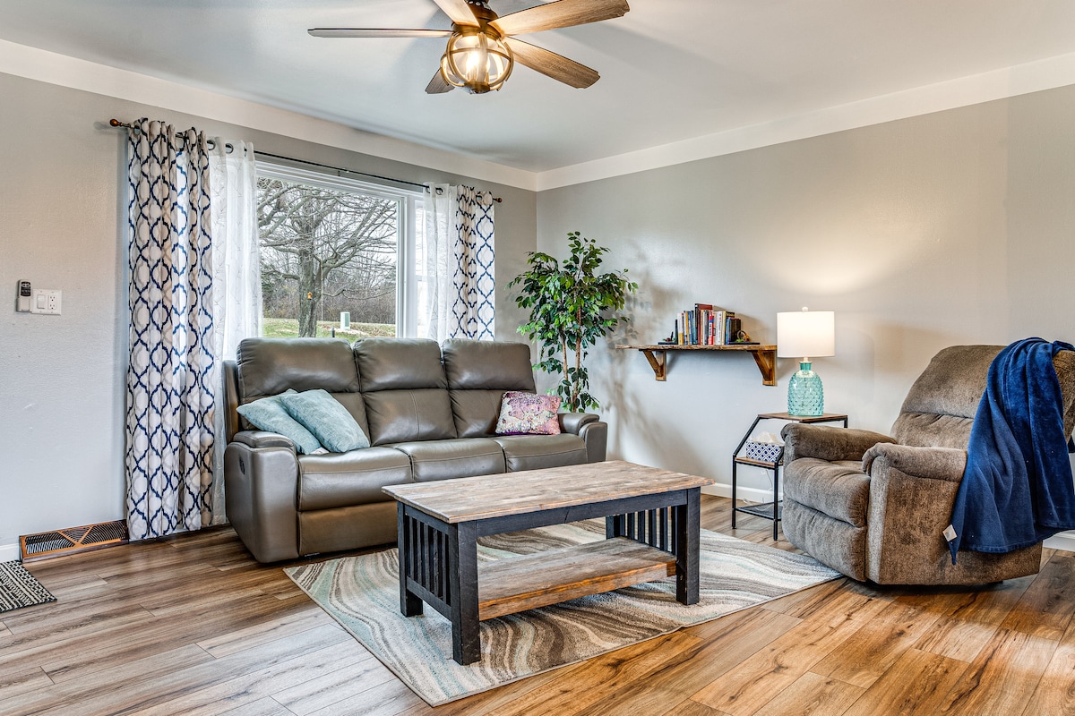 You will have a great time staying in this newly renovated 2 bedroom, wheel chair accessible bathroom apartment. We have a spacious, open-concept kitchen and livingroom suitable for larger families or even hosting a small gathering or event. Located in the country 1/2 way between Indianapolis, IN and Dayton OH, you will find easy access to I 70. This apartment is pet friendly ($15/night) and is equipped with fenced yards for exercise.